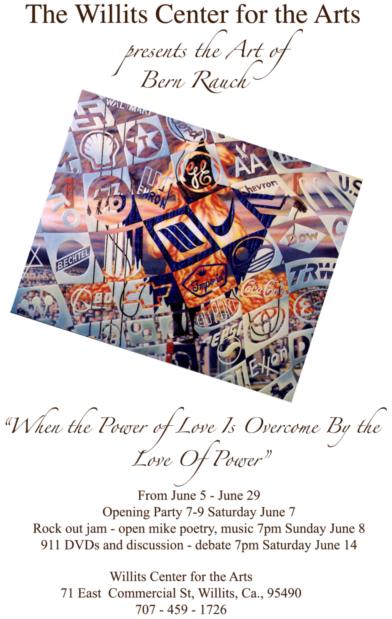 A community event exploring the nexus of arts, activism and politics. Featuring presentations, speakers, film, spoken word, performance, music, and art inspired by the unanswered questions of Sept 11, we will gather to honor those who lost their lives and to strengthen our community's collective efforts to topple the Bush administration, preventing future crimes committed in the name of greed and power.