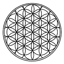 Additional symbols include the ancient "Flower of Life."