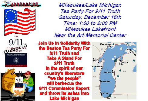 According to polls, most of the American people believe that the official 9/11 story of George W, King Pretender, is fatally flawed or a deliberate lie. As more and more scholars, physicists, engineers, architects, and high-level government, military and intelligence insiders come forward to contribute to a fuller understanding of the true facts of 9/11 (patriotsquestion911.org), often at great risk to themselves, so we come forward to add our voices to those of Boston and New England 9/11 Truth groups who believe that truth is the moral imperative of our democratic society and an obligation of all public servants. We were joined by 9/11 Truth groups in Milwaukee and other cities who organized their own Tea Parties for 9/11 Truth.