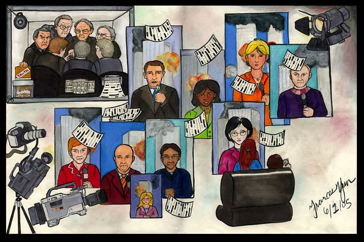 1st Place - Frances Yun, age 17"I tried to portray how much the truth was blacked out and the repetition of the same minimal facts and images. "